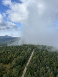 Als wir angekommen sind, sind wir direkt ein bisschen wandern gegangen. Wir sind zum Friedrichsturm gelaufen. Dort haben wir einen Siebenschläfer entdeckt und hatten eine tolle Aussicht über den Wald. Wir konnten beobachten, wie die Nebelfront immer näher kam.