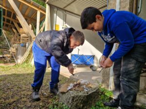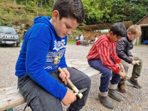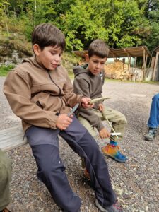 Außerdem haben wir tolle Sachen geschnitzt und mit Feuersteinen selbst Feuer gemacht. Am ersten Abend haben wir Dunkelverstecken gespielt. Es war cool, dass wir es alle zusammen gemacht haben.