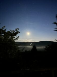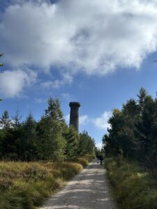 Als wir angekommen sind, sind wir direkt ein bisschen wandern gegangen. Wir sind zum Friedrichsturm gelaufen. Dort haben wir einen Siebenschläfer entdeckt und hatten eine tolle Aussicht über den Wald. Wir konnten beobachten, wie die Nebelfront immer näher kam.